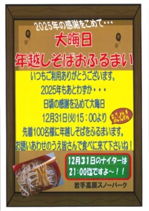 ・先着100名様に「年越しそば」を無料でふるまいます。