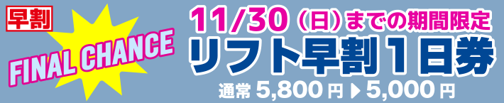 シーズン中いつでもご利用いただける「1日券」を11/30までの限定販売!